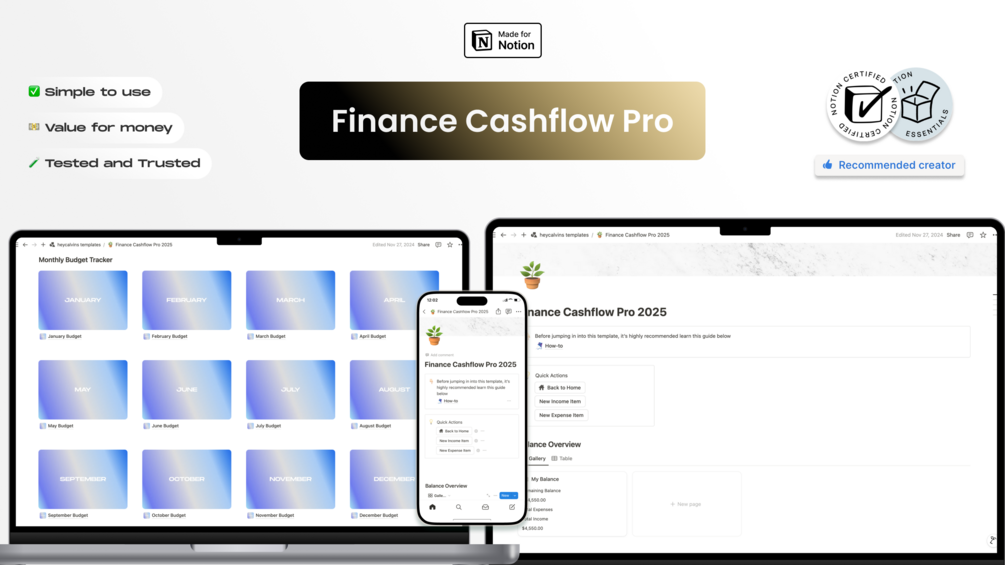 This pre-made Finance Cashflow Pro template is designed to help you track and monitor your budgeting so that you'll save more and able to monitor your spending