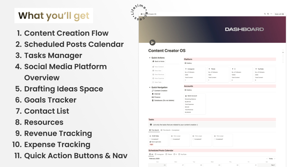 Stop feeling scattered and start creating consistently with the Content Creator OS Notion template.