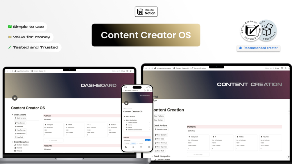 Stop feeling scattered and start creating consistently with the Content Creator OS Notion template.