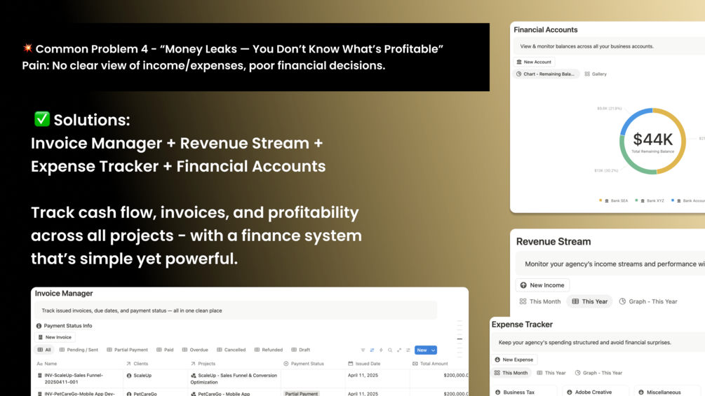Even if you're just starting out - this Notion Premium Agency OS gives you the structure of a 6-figure agency from day one.