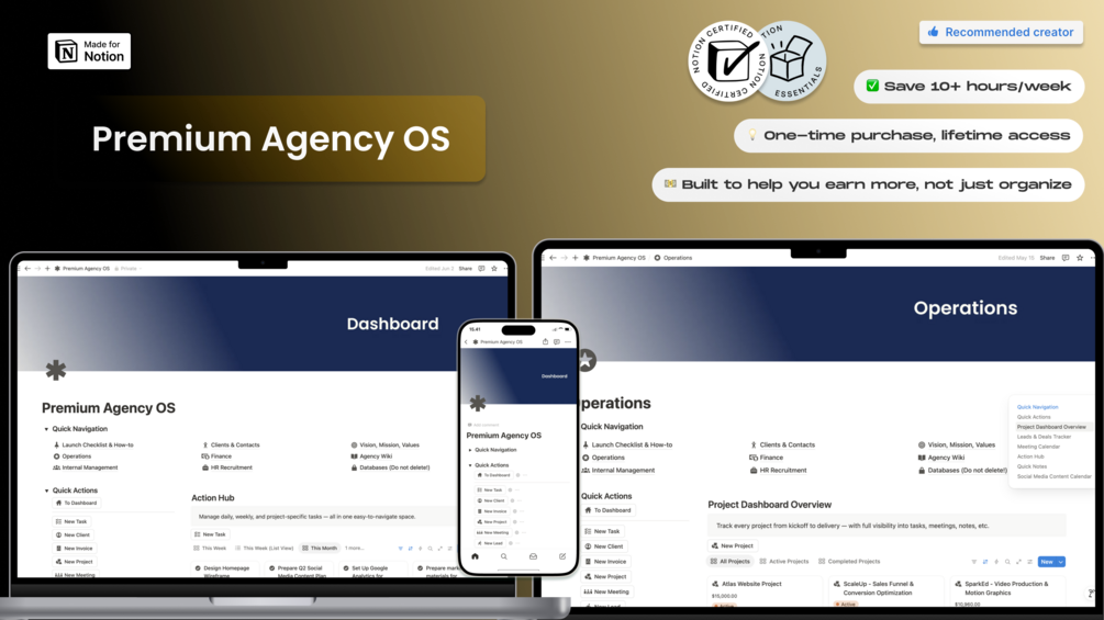 - This Notion Premium Agency OS saves 30–50+ hours of setup & decision fatigue.